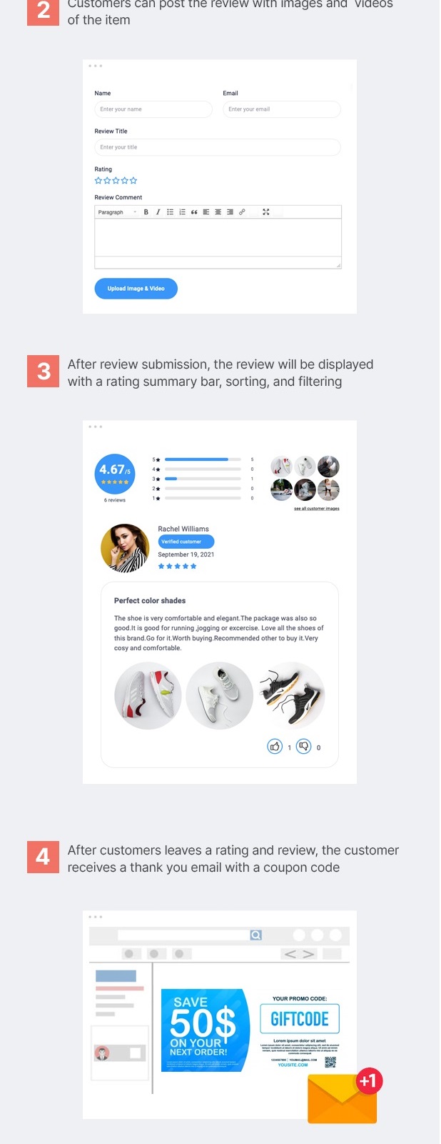 - Tặng coupon giảm giá khi khách hàng đánh giá sản phẩm