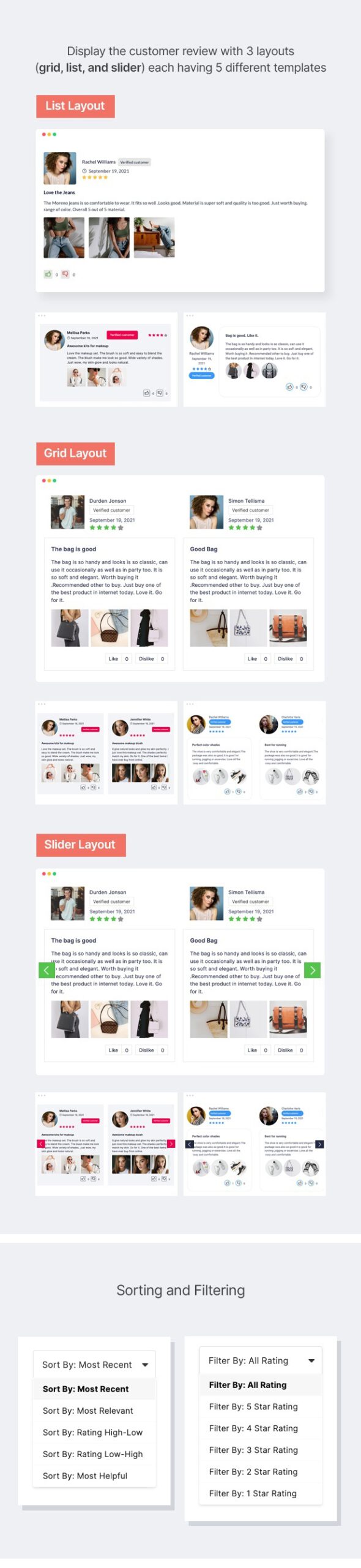 - Thay đổi giao diện phần đánh giá (có 3 tùy chọn : grid, list, slider)