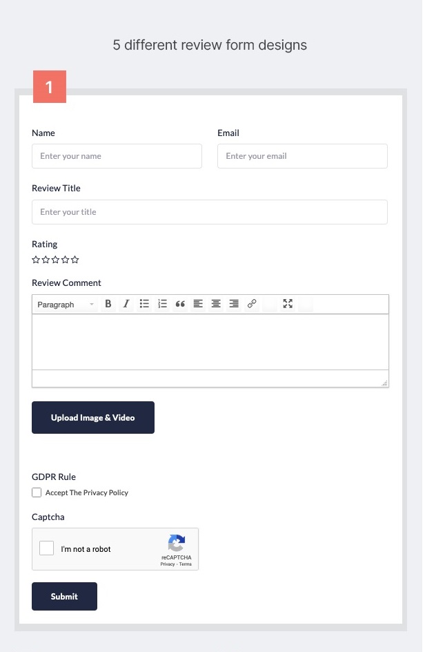 - Captcha chống bot spam đánh giá