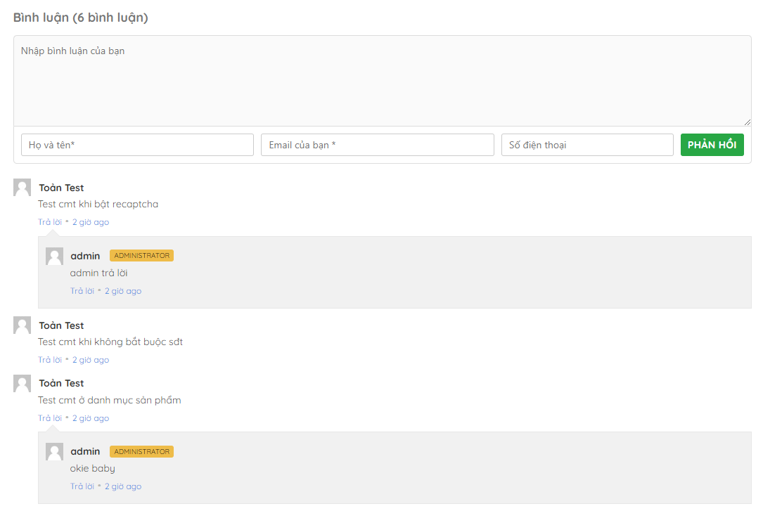 - Có hỗ trợ google reCaptcha để tránh spam